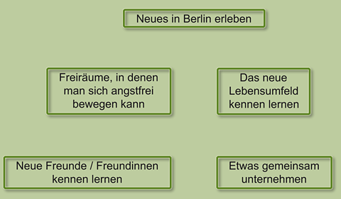 Die Gruppenangebote sollen die im Projekt lebenden Kinder und Jugendlichen miteinander bekannt machen. Sie erleben durch gemeinsame Aktivitäten Spaß und positive Freizeitgestaltung, aber auch, dass andere Kinder und Jugendliche von häuslicher Gewalt betroffen sind und ein Gespräch über die erfahrenen Gewalterlebnisse möglich ist und entlastend wirken kann.